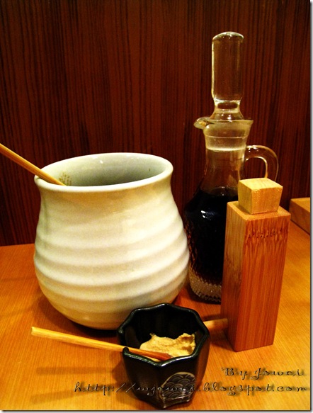 每張桌上都備有豬排醬、和風醬、黃芥末及七味粉,任君挑選~!!